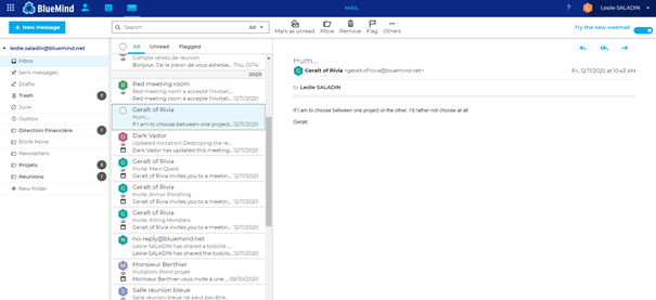 Es ist soweit: Der neue BlueMind-Webmailer ist da (in der Beta-Version). Ein sechsköpfiges Team war 3 Jahre lang mit der Entwicklung beschäftigt (und die Arbeit ist noch nicht beendet), um Ihnen diese neue Anwendung anzubieten.