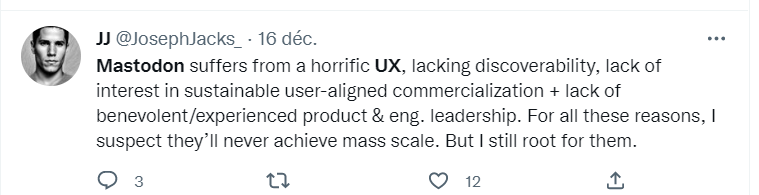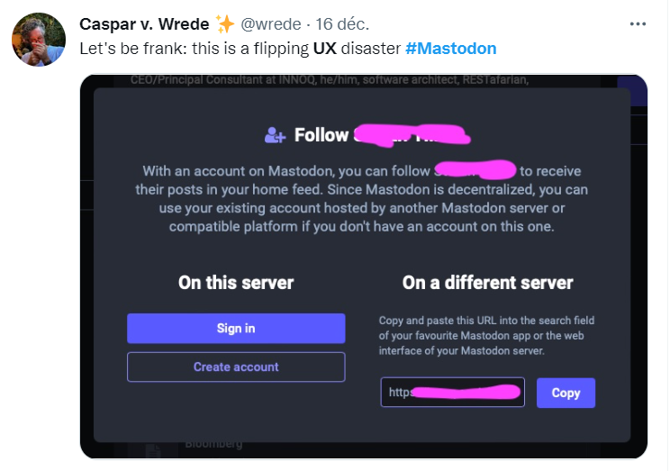 Trotz der Migrationswelle glauben die Stammkunden von Mastodon jedoch nicht, dass sich der Trend fortsetzt oder dass ihr Tool Twitter eines Tages verdrängen könnte. Der Grund dafür: Mastodon ist zu kompliziert zu nutzen – ganz abgesehen von den Herausforderungen des technischen Modells. Hier sind einige Beispiele für Nachrichten, die in den letzten Wochen ironischerweise auf Twitter gepostet wurden: