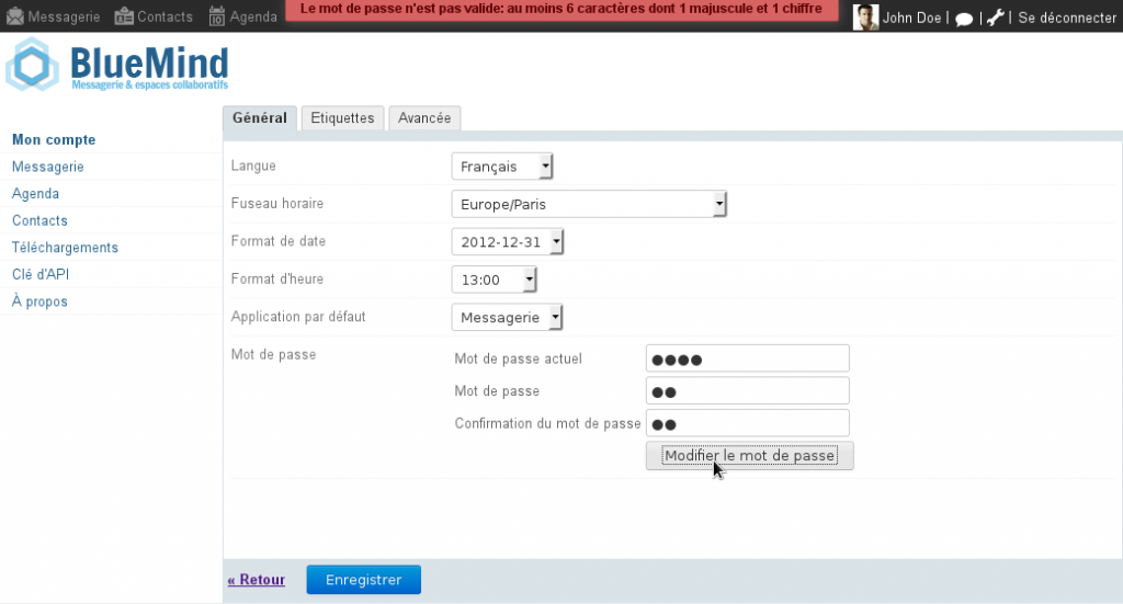 Afin de mettre en place une sécurité accrue dans les mots de passe des utilisateurs, vous pouvez installer le plugin «Password SizeStrength» afin de définir des règles strictes de validité pour un mot de passe. Si les règles ne sont pas respectées lorsqu’un utilisateur essaie de modifier son mot de passe, une alerte s’affiche alors en haut de sa page.