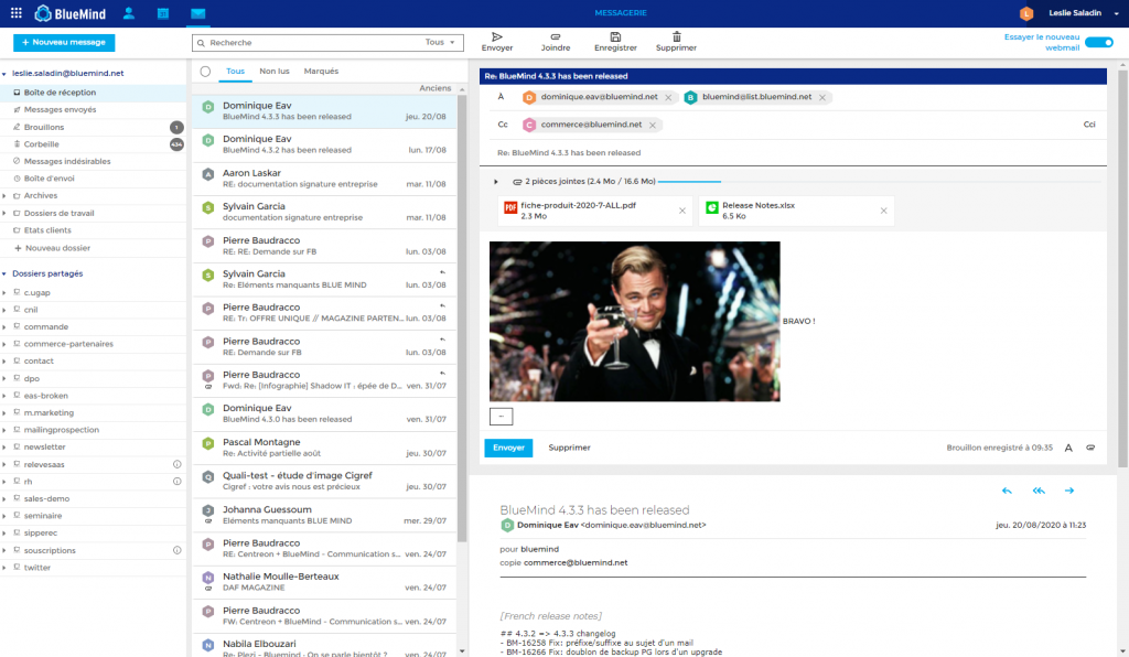 - Progress on BlueMind’s new webmail