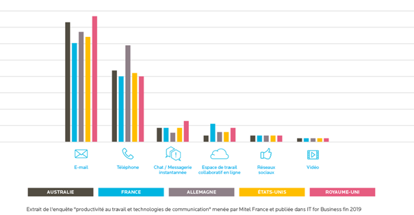 Outlook est omniprésent. Il est le client le plus utilisé en entreprise. La messagerie étant l’outil le plus utilisé au quotidien, très loin devant les autres, c’est donc un domaine dominé par les habitudes utilisateur :