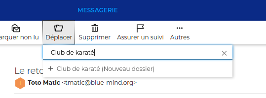 - Dossiers faciles : L’interface de gestion des dossiers de messagerie n’était pas la première qualité du webmail de BlueMind ! Le nouveau webmail permet de créer, modifier ou supprimer des dossiers de messagerie à la volée et en toute simplicité pour une réorganisation rapide. Il est ainsi possible de créer directement un nouveau dossier au moment de déplacer des messages, sans passer par une autre interface.