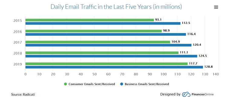 L’usage de l’email ne fait que croître et ne montre aucun signe de ralentissement, ni en entreprise, ni auprès du grand public :