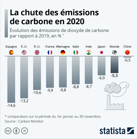 Très clairement, la mise à l’arrêt forcée de l’économie mondiale a fait drastiquement baisser les émissions de CO2 sur l’année écoulée.
